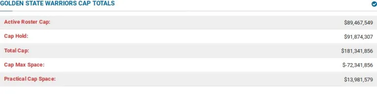 Comment lire ce tableau (disponible ici :https://www.spotrac.com/nba/golden-state-warriors/cap/) ? Pour faire simple :