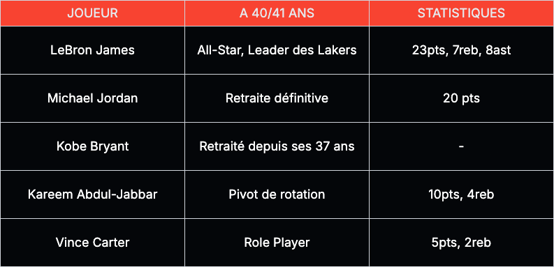 Comparaison : LeBron vs Les Légendes à 40 ans